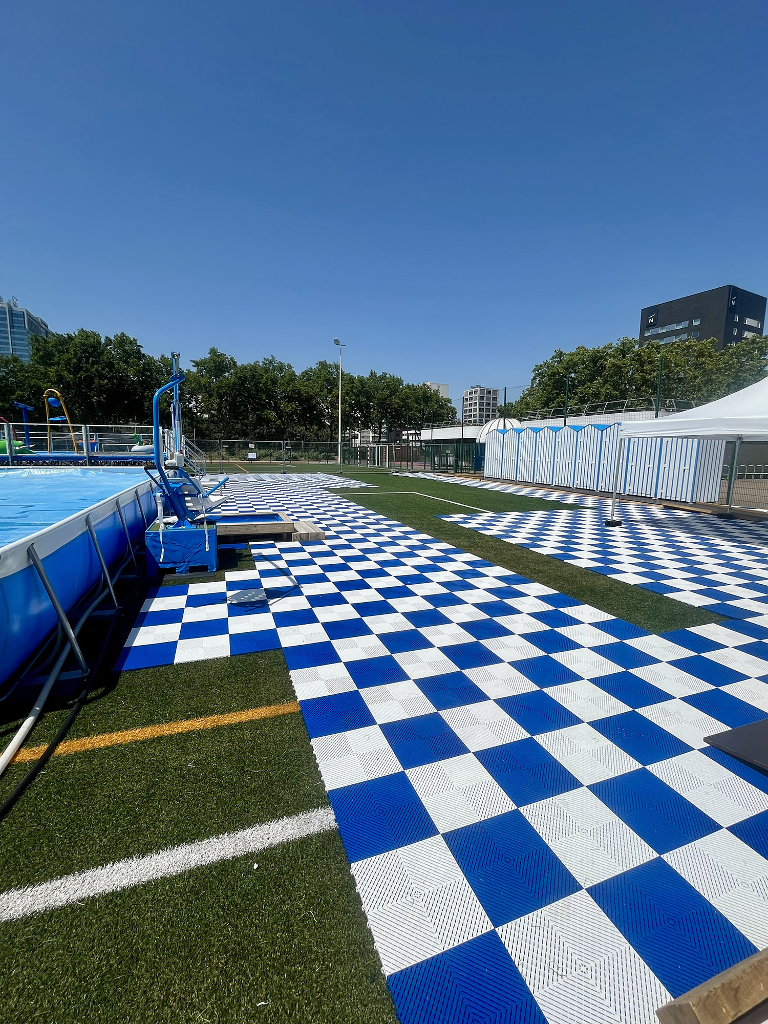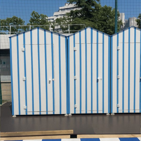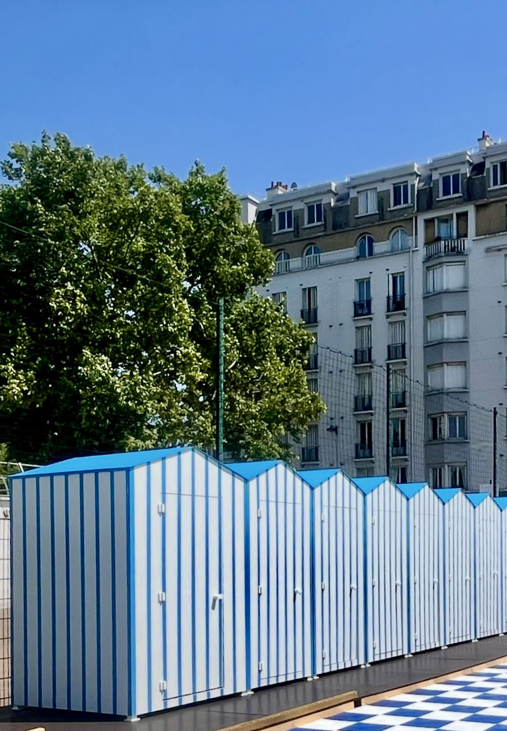 Dernièrement, la ville de Paris nous a commandé des cabines de plage qu’elle a disposé sur un terrain de football durant les derniers JO de Paris.
