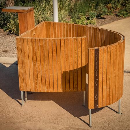L’utilisation du bois, matériau noble et chaleureux, apporte un véritable cachet visuel aux espaces publics. Résistante et durable, cette douche est conçue pour répondre aux exigences d’utilisation intensive sur des sites accueillant un fort passage.