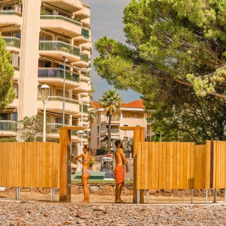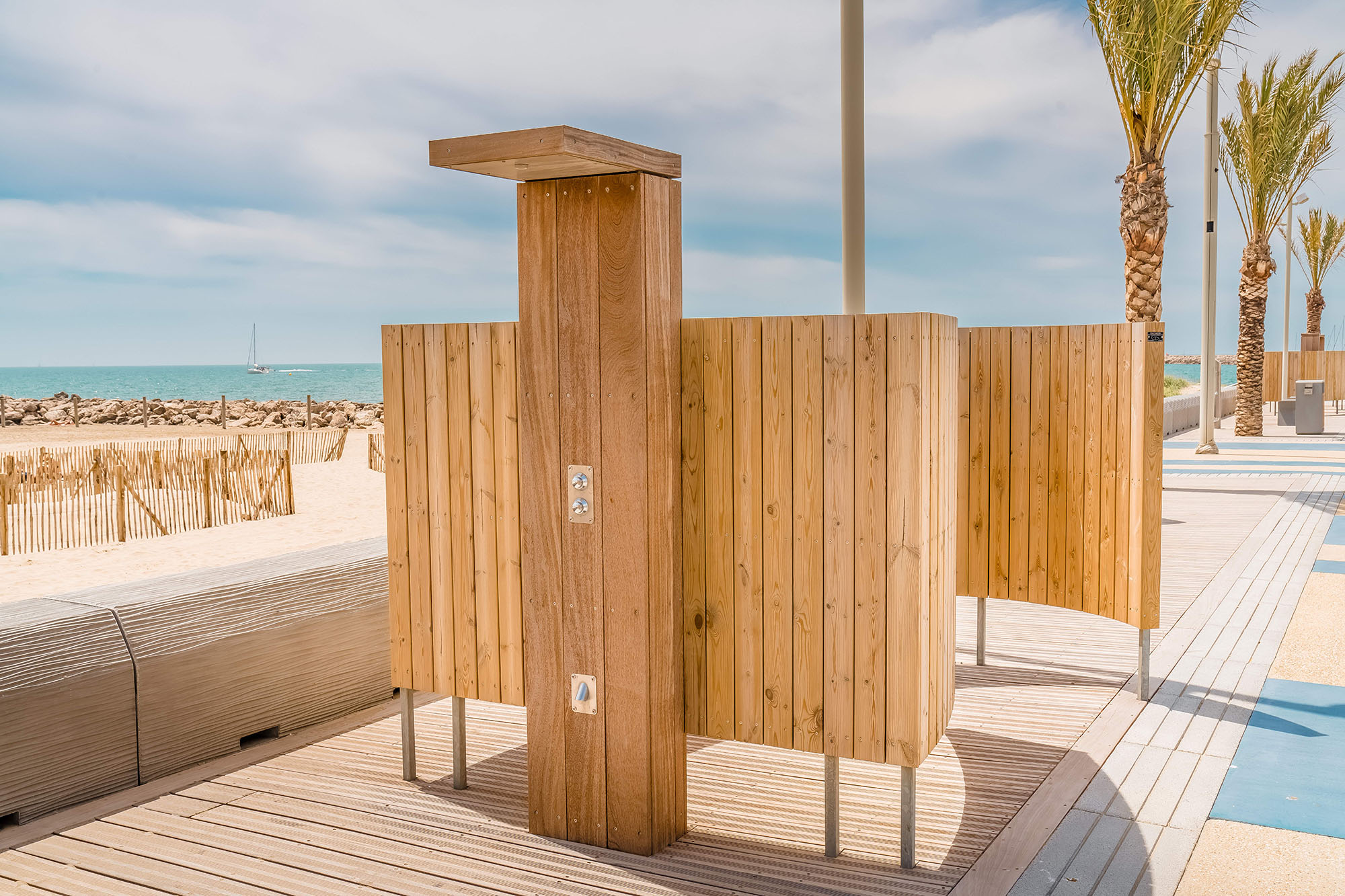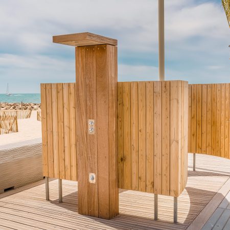 La douche extérieure en bois Onlywood est une réponse directe aux attentes des collectivités, campings, gestionnaires de plages ou responsables de bases de loisirs.