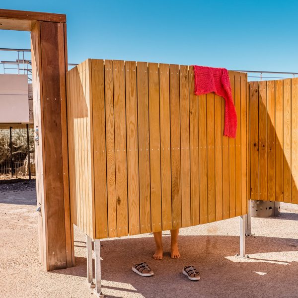 La douche extérieure en bois n’est pas seulement un équipement esthétique. Elle répond aussi à un besoin concret : permettre aux visiteurs de profiter des espaces en toute sérénité.