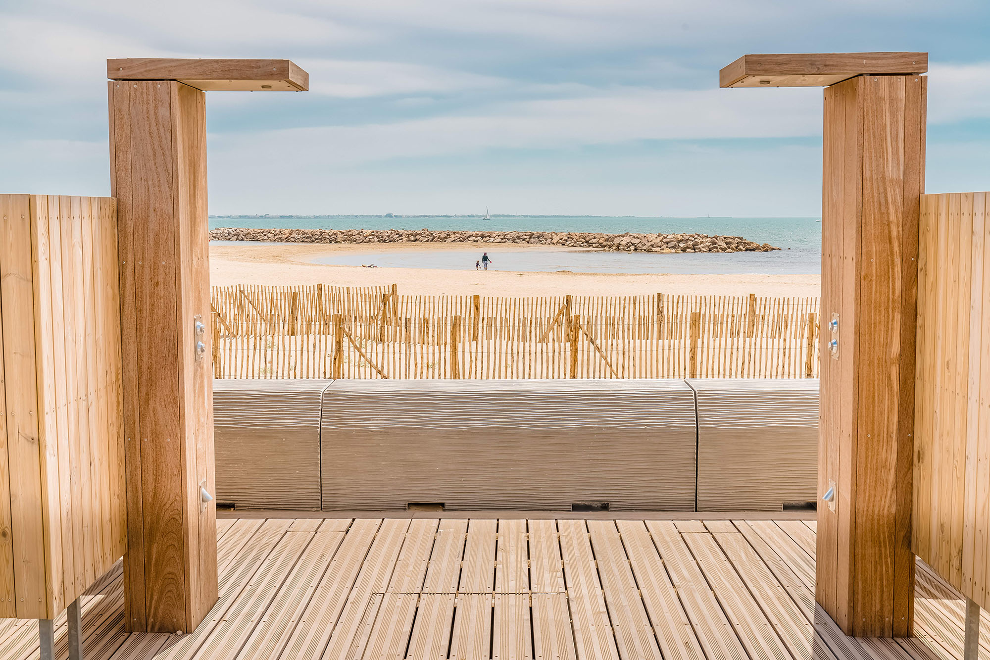 La douche extérieure en bois Onlywood offre un point de rinçage très élégant et fonctionnel pour les plages, lacs et zones de baignade. Conçue pour accueillir tous les publics, elle garantit confort et accessibilité à chacun.