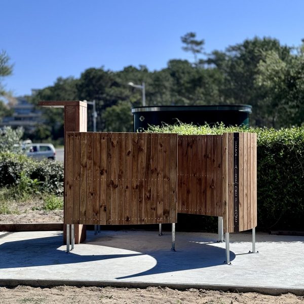 Onlywood a étudié le site et proposé des solutions adaptées aux besoins des usagers. Nous avons déployé des vestiaires de change et douches fonctionnelles, accessibles et durables, conçus pour s’intégrer harmonieusement dans le paysage naturel et valoriser le littoral.