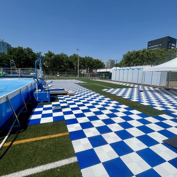 Soucieuse d’offrir aux Parisiens un lieu estival accessible à tous, la Ville de Paris nous a demandé de travailler à la création d’un espace détente convivial en transformant un stade de football en zone de baignade éphémère. Un projet ambitieux plaçant l’inclusion et l’accessibilité au cœur de l’expérience urbaine.
