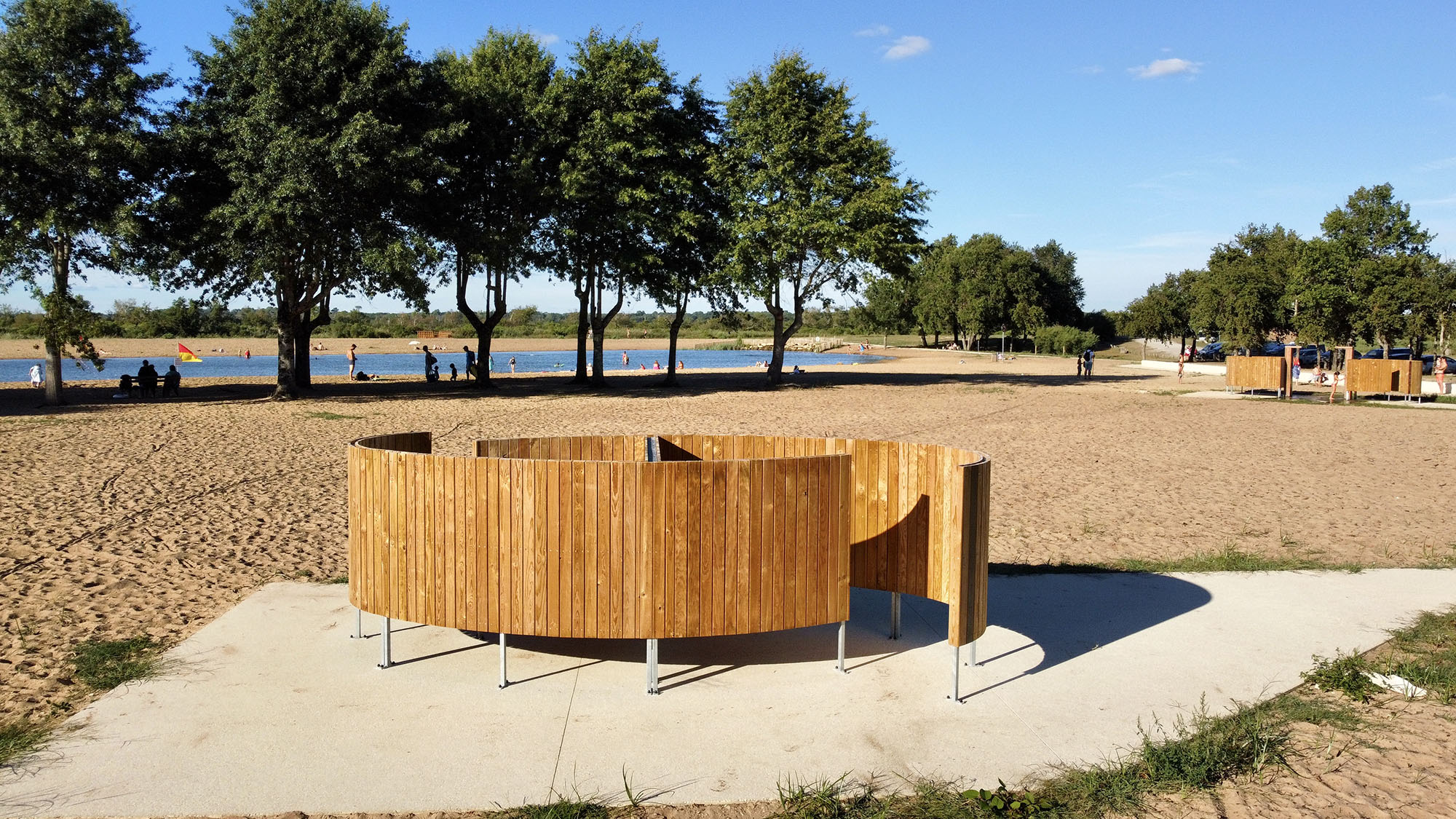 « Nous avons installé deux équipements vestiaires et douches PMR qui sont assez remarquables en capacité d’intégration dans le site de loisirs. Avec la possibilité de les enlever l’hiver, et pour nous c’était vraiment l’essentiel. » / François Deluga – Maire du Teich